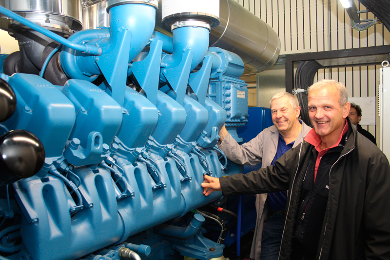Als Herzstück der Notstromversorgung wurde nun ein neues Dieselaggregat offiziell in Betrieb genommen. Das 2200 PS starke Monster springt ein, wenn die externe Stromversorgung des Krankenhauses nicht mehr gewährleistet ist. Mit ihrem, 20.000 Liter fassenden, Tank garantiert die Anlage, als eines von zwei Sicherheitssystemen, im Ernstfall eine tagelange Aufrechterhaltung der Stromversorgung und somit des Krankenhausbetriebs. Das, rund 700.000 Euro teure Gerät ersetzt die alte Anlage, einen 1600 PS starken Diesellok- Motor aus dem Jahre 1979. Ganz ausgedient hat das alte Aggregat dennoch nicht; kann es doch bei Bedarf, wie zum Beispiel während Wartungsarbeiten, wieder in Betrieb genommen werden. BILDTEXT Betriebselektriker Josef Fasching (links) und der Leiter der Haustechnik des Landesklinikums Krems, Ing. Harald Schlager freuen sich über das neue Dieselaggregat.