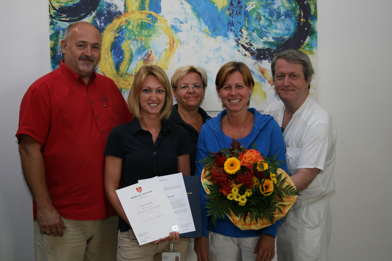 DGKS Elisabeth Steffel vom Palliativteam im Landesklinikum Gmünd absolvierte den interprofessionellen Palliativlehrgang an der Kardinal König Akademie Wien und den deutschsprachigen Masterstudienlehrgang Gesundheitsmanagement an der Middlesex University London/KMU Akademie & Management AG.