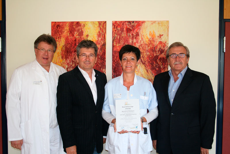 Bereits seit 2008 ist das LK Mistelbach-Gänserndorf mit dem „Gütesiegel selbsthilfefreundliches Krankenhaus “ ausgezeichnet. Nun wurde es rezertifiziert und darf sich über die weitere Verleihung des Gütesiegels freuen. Das Qualitätsprojekt „Gütesiegel selbsthilfefreundliches Krankenhaus“ stellt den zwischenmenschlichen Faktor in den Mittelpunkt und betont die wertschätzende Haltung zwischen dem jeweiligen Landesklinikum und den Selbsthilfegruppen. Die Selbsthilfegruppen bieten auf der einen Seite ihren Mitgliedern Hilfestellung bei der Bewältigung des täglichen Lebens. Die Mitarbeiterinnen und Mitarbeiter der Landeskliniken auf der anderen Seite profitieren vom umfangreichen Erfahrungswissen der Gruppenmitglieder. Im Zuge dieses Projekts wird die „Selbsthilfefreundlichkeit“ nach bestimmten Qualitätskriterien in Abständen immer wieder durch eine unabhängige Jury bewertet. „Aufgrund der bisher sehr guten Erfahrungen führen wir gerne dieses Projekt weiter und es freut uns deshalb ganz besonders, dass wir durch die Rezertifizierung wieder das Gütesiegel als Selbsthilfefreundliches Krankenhaus erhalten haben“, meint Pflegedirektor DGKP Josef L. Strobl, akad. PD. Download Ein „Selbsthilfegruppenfreundliches Krankenhaus“ zeichnet sich dadurch aus, dass es sein ärztliches und pflegerisches Handeln durch das Erfahrungswissen der Selbsthilfegruppen erweitert, den Kontakt zwischen Patienten und Selbsthilfegruppen fördert und kooperationsbereite Selbsthilfegruppen aktiv unterstützt. Derzeit sind 12 Selbsthilfegruppen im Landesklinikum aktiv tätig, unter anderem die Selbsthilfegruppe „Frauen nach Krebs“, die Selbsthilfegruppe für Tinnitus, Hörsturz und Morbus Meniere sowie die Selbsthilfegruppe „Multiple Sklerose Mistelbach“.