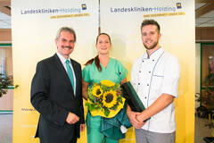 (v.l.) LR Mag. Karl Wilfing, DGKS Brigitte Vosel, Koch Markus Kusche