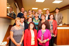 Ehrung der Mitarbeiter, die in Pension gingen: (v.l.) vorne: Maria Luise Aichberger, Monika Steyrer, Ingeborg Hirner. 2. Reihe: Maria Grabner, Waltraud Panhofer, Gerda Grabner, Annemarie Roseneder, Romana Jandl. 3. Reihe: Erika Riha, Christine Weninger, Prim. Dr. Wolfgang Öhlinger. 4. Reihe: Prim. Dr. Christian Meznik, Susanne Schwingenschlögl, BR Margit Huber, Pflegedirektorin Renate Sommer
