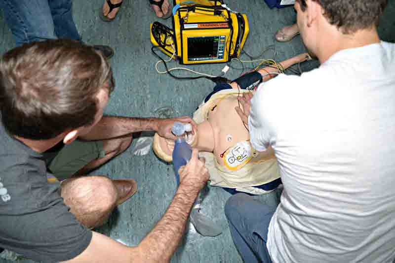 Lebensrettende Sofortmaßnahmen wie Herz-Lungen-Wiederbelebung sowohl für Erwachsene als auch für Kinder sind zentrale Elemente. Der Kurs ist so aufgebaut, dass neben Vorträgen das praktische Üben in Kleingruppen im Mittelpunkt steht. So werden in lebensnahen Szenarien, die Ärztinnen und Ärzten in den Kliniken jederzeit begegnen können und rasches Handeln bedürfen, die notwendigen Behandlungsalgorithmen perfektioniert. Die Teilnehmenden können an Phantomen auch Techniken wie Atemwegssicherung und invasive Maßnahmen üben.
