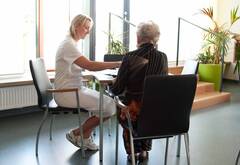 Raum und Zeit: Die hellen freundlichen Räume ermöglichen eine gelöste Atmosphäre. Dr. Alexandra Egger berät eine Patientin im Aufenthaltsraum.