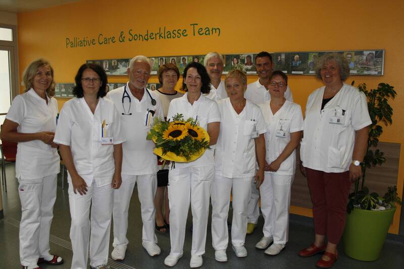„Wir wollen Bilder mit Schlagworten sprechen lassen“, ist sich das Palliativteam für die Gestaltung und den Rückblick bei der 15-Jahrfeier einig. Freundliche, helle Räume bunte Bilder an den Wänden sorgen für eine gelöste Atmosphäre auf der ganzen Station. „Wir versuchen mit verschiedenen Therapien Schmerzen und Beschwerden unserer Patientinnen und Patienten zu lindern und entlassen sie dann im besten Fall in den Kreis ihrer Familie. Unsere Station mit der Sonnenterrasse, den hellen Zimmern mit Balkon und Blick in den Garten gewährt uns im Einklang mit der Natur Lebensqualität zu ermöglichen.“, erklären die Stationsleitungen OÄ Dr. Birgit Kum-Taucher und DGKS Petra Schweighofer.