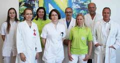 (v.l.) Diätologin Andrea Past, BSc, Mag. Alexandra König, leitende Physiotherapeutin Lucia Neuhart, Diätologin Monika Kaiser, OA Dr. Gerfried Naderer, Physiotherapeutin Christina Stradal, Prim. Dr. Franz Hoffer und OA Dr. Philipp Beckerhinn