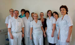 (v.l.) Qualitätsmanager DGKP Herbert Schörghuber, Prim. Dr. Karl Weghaupt, Annabell Heiss,MA, Pflegedir. DGKS Renate Sommer, DGKS Rosa Tietze, DGKS Maria Geisler, DGKS Vera Eichhorn-Bill, DGKS Manuela Fluch, Hebamme Hacer Percin, Bereichsleiterin DGKS Annemarie Mitterlehner