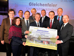 „Das Haus C wird das Zentrum aller lebensrettenden Einheiten im Spital: OP-Säle, Notaufnahme und die gemeinsame interdisziplinäre Leitstelle sind hier untergebracht. Insgesamt wird das neue Haus C gewaltige 70.000 m² umfassen und auch den Großteil der Kosten – 205 von 510 Millionen Euro Gesamtausbau – ausmachen. Hier werden die Patientinnen und Patienten eine hervorragende Infrastruktur vorfinden, die Spitzenmedizin im 21. Jahrhundert ermöglicht. Jetzt wird mit dem Innenausbau begonnen“, erklärt Landesrat Karl Wilfing im Rahmen der Gleichenfeier auf der Großbaustelle.