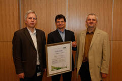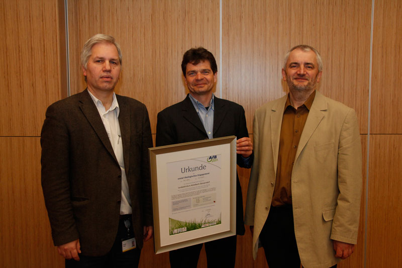 Ing. Dieter Hundstorfer, AfB Niederlassung Wien, (Mitte) überreichte die Urkunde für das gesellschaftliche Engagement an den Leiter der IT Abteilung und Stv. Kaufmännischen Direktor DI Karl Schreiber (re) und den Stv. Leiter der IT Günter Faber (li).