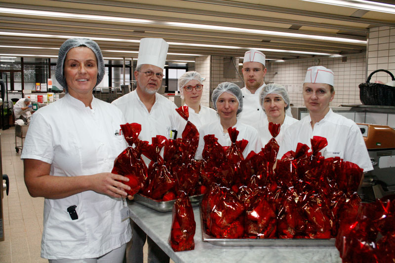 Bräuche und Traditionen werden im Landesklinikum Gmünd stets auch mit einem Beitrag aus der Küche gepflegt. Zum Fest des Hl. Nikolaus wurden daher rund 400 Nikolosäckchen mit selbstgemachten Germteigkrampussen, Obst, Nüssen und Süßigkeiten zusätzlich zu den ca. 350 täglich zubereiteten Essensportionen vorbereitet und an Patientinnen und Patienten, Personal, Kindergärten, Schulen und Konsumenten der Aktion Essen auf Räder verteilt.