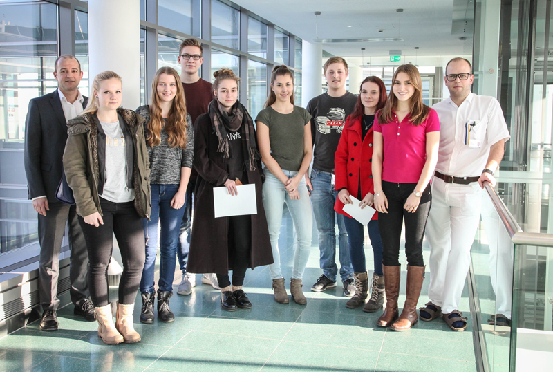 Thomas Schmallegger, MSc (1.v.l.), und Dr. Georg Danzinger (1.v.r.) mit den interessierten Maturantinnen und Maturanten