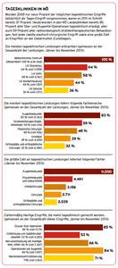 Gut die Hälfte aller Eingriffe im Untersuchungszeitraum betrafen Augenabteilungen, gefolgt von chirurgischen (16,5 %) und gynäkologischen (9,3 %) Eingriffen. Das Durchschnittsalter der Patienten in den Augenabteilungen lag bei gut 73 Jahren, das aller anderen Eingriffe bei knapp 52 Jahren. Einige Ergebnisse: 94 von 100 möglichen Punkten erzielten die Stationen und Abteilungen für das Terminmanagement bei Voruntersuchungen und am OP-T ag. Fast 99 Punkte bekamen Ärzte- und Pflegeteams in Sachen Freundlichkeit, gute 98 Punkte für die pflegerische bzw. ärztliche Betreuung und die Aufklärung. 97 Punkte gab es auf die Frage nach der Zufriedenheit mit dem tagesklinischen Eingriff. Und so gut wie alle Patienten würden sich wieder tagesklinisch behandeln lassen.
