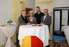 (v.l.) Dir.-Stv. Karina Ratzenberger, Dir.-Stv. Michaela Renner, MSc, Schüler Florian Renner und der kfm. Direktor, Dipl.KH-BW Anton Hörth, empfingen die BesucherInnen des Infotages.