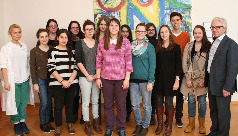 Ärztlicher Direktor Prim. Univ.-Doz. Dr. Rudolf Kuzmits und Turnusärzte-Vertreterin Dr. Katharina Eisnecker mit den interessierten Jugendlichen.