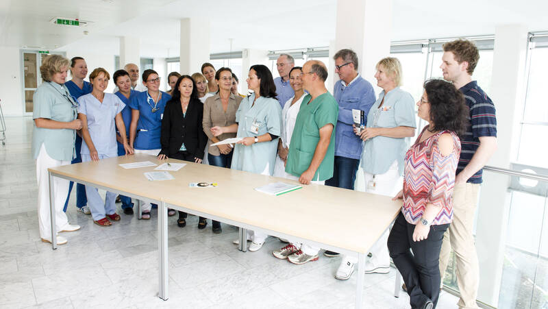 „Die Interdisziplinäre Schmerzkonferenz setzt dort an, wo Therapiemaßnahmen einer Fachdisziplin nicht zum gewünschten Ergebnis geführt haben. Fächerübergreifend wird über mögliche Therapieoptionen, Therapieoptierungen und an der Planung neuer Ansätze gearbeitet“, so Prim. Assoc. Prof. Dr. Christoph Hörmann, Leiter der Klinischen Abteilung für Anästhesie und Intensivmedizin am Universitätsklinikum St. Pölten.