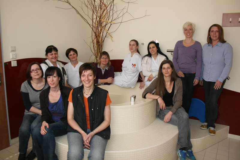 (v.l.) vorne: DGKS Elisabeth Puchbauer-Schnabl, die Hebammen Christine Fentz, Eva Leitner und Melanie Stacher. Hinten: die Hebammen Maria Dorner, Elisabeth Stockner, Verena Uysal, Tanja Reitmayr, Iris Oberbramberger, Bernadette Ecker und DGKS Angelika Üblackner