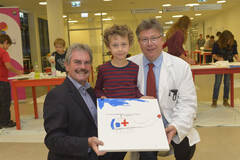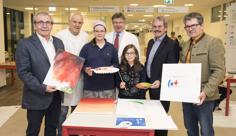 Die Kollegiale Führung des Landesklinikums Mistelbach-Gänserndorf schaute gemeinsam mit Landesrat Mag. Karl Wilfing bei der Malaktion vorbei, um die Werke der kleinen Künstler zu bewundern.