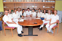 Die abwechslungsreiche Arbeit schätzt auch DGKS Elisabeth Khan. Direkt nach der Krankenpflegeschule begann sie im Jahr 1979 auf der Station zu arbeiten, war danach im Augen-OP und ist nun seit 26 Jahren Stationsleitung. Die erfahrene Diplomkrankenschwester kennt Primarius Funder seit seiner Turnusausbildung, die er zum Teil in Horn absolvierte – nun arbeiten die beiden seit vielen Jahren als eingespieltes Führungsduo zusammen. „Ambulanz, Station und Tagesklinik: Unser Aufgabengebiet ist vielfältig und wir sind stets bemüht, den Patienten in den Mittelpunkt zu stellen.“ Und das gelingt auch – das belegt jedes Jahr das gute Ergebnis der Patientenbefragung. Darauf ist das Team besonders stolz. Fröhlich und trotzdem mit dem nötigen Ernst gehen die Mitarbeiterinnen und Mitarbeiter ihrer Arbeit nach, sagt