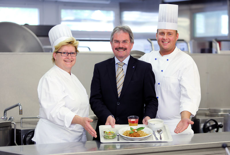(v.l.) Küchengehilfin Christine Leisser, Landesklinikum Mistelbach-Gänserndorf; Landesrat Mag. Karl Wilfing; Koch Rainer Dworak, Landesklinikum Mistelbach-Gänserndorf Copyright: scharfstellen-auslösen Fotografie Veronika Rath