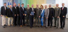 (v.l.) ADir Akad.KrkhMan Gerald Wiedner, MSc (RefLtr MilMed), Dr. Martin Bayer (Bereichsleiter Notfall- und Katastrophenmedizin), Prim. Dr. Helmut Trimmel, MSc (Leitung Anästhesie, Notfall- und Allgemeine Intensivmedizin, LK Wiener Neustadt), Prim. Dr. Bernhard Bacher (Leitung Anästhesiologie und Intensivmedizin, LK Amstetten), Dr. Andreas Krauter, MBA (Regionalmanager Mostviertel), Bgdr Dr. Robert Hofmann (AbtLtr MilMed), Landesrat Mag. Karl Wilfing, GenLt Mag. Akad. KrkhMan Norbert Gehart (SektLtr S III), Mag. Erika Meinolf (Abteilungsleiterin Recht und Personal), Dipl. KH-BW Helmut Krenn (Kaufm. GF), Dr. Robert Griessner (Med. GF), Bgdr Mag. Martin Jawurek (MilKdt NÖ m.d.F.b.), Mag. Gert Kovarik (stv. Kaufm. GF und Abteilungsleiter Finanzen und Controlling)