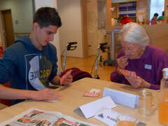 Beim Memory-Spielen trainierten Schülerinnen und Schüler sowie Heimbewohnerinnen und Heimbewohner ihre Gedächtnisleistungen.