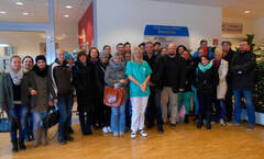 Elisabeth Windbichler, Pflegedienstleiterin des Sozialzentrums SeneCura, und Michael Hofstetter, Lehrer der Gesundheits- und Krankenpflegeschule, mit den Schülerinnen und Schülern des zweiten Ausbildungsjahrganges.
