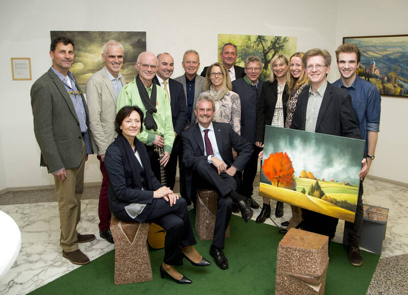 Kunstvolle Sitzsteine des Maria Enzersdorfers András Bodi laden zum Verweilen ein, dazu zeigen farbenfrohe Acryl-Bilder des Trumauer Künstlers Georg Vees Mystik und Charakter verschiedener Landschaftstypen und bringen Abwechslung in den Klinikalltag. Im Rahmen einer Vernissage wurde die Ausstellung nun von Landesrat Mag. Karl Wilfing feierlich eröffnet.