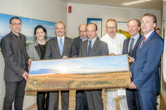 Fotograf Reinhard Podolsky, Pflegedirektorin Mag. Elisabeth Klang, Landesrat Mag. Karl Wilfing, stv. kaufm. Direktor Dipl. KH-Bw Karl Busta, kaufm. Direktor Mag. Franz Huber, ärztlicher Direktor Prim. Univ. Prof. Dr. Martin Breitenseher, Regionalmanager Dr. Andreas Reifschneider, Bürgermeister LAbg. Jürgen Maier