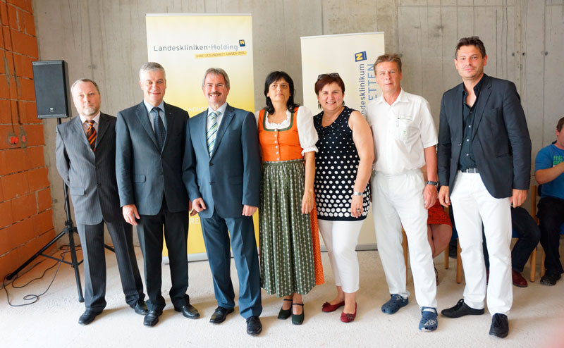 Stv. Kfm. Dir. Dipl. KH-BW Wolfgang Schweighuber, Landtagsabgeordneter Anton Kasser, Landesrat Mag. Karl Wilfing, Pflegedirektorin DGKS Renate Sommer, Landtagsabgeordnete Michaela Hinterholzer, Ärztlicher Direktor HR Prim. Dr. Christian Meznik, Architekt Dipl.-Ing. Thomas Jedinger