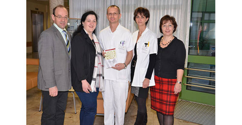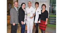 (v.l.) Mag. Franz Huber (Kaufmännischer Direktor), Mag. Elisabeth Klang (Pflegedirektorin), DGKP Stefan Fehringer (Stationsleiter Interne 3/Gyn.), DGKS Petra Pacher (Stellvertreterin der PD)