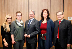 Mauer: (v.l.) Eva-Maria Korntheuer (Abteilung Einkauf, NÖ Landeskliniken-Holding), Renate Vielmetti (Küchenleitung LK Mauer), Landesrat Mag. Karl Wilfing, Gerda Dressler (Küchenleitung LK Gmünd), Christian Schauer (Abteilungsleiter Einkauf, NÖ Landeskliniken-Holding)