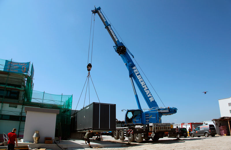 Das Aggregat verfügt über eine Leistung von 1000kVA. Eine solche Leistung würde ausreichen, um 300 Haushalte mit Strom zu versorgen. Die Kraftstoffversorgung erfolgt aus einem Diesel-Vorratstank. Bei der Größe dieses Tanks wurde auf Sicherheit Wert gelegt: Der Tank ist so groß, dass er den elektrischen Betrieb des Hauses für drei Tage sicherstellen kann. Sowohl die Bauweise des Aggregats als auch die Ausführung in einer Container-Anlage zielen auf eine langfristige Nutzung ab. Stets aktuelle Informationen zum Logistikzentrum finden Sie auch auf der Bau-Homepage www.logistik-thermenregion.at.