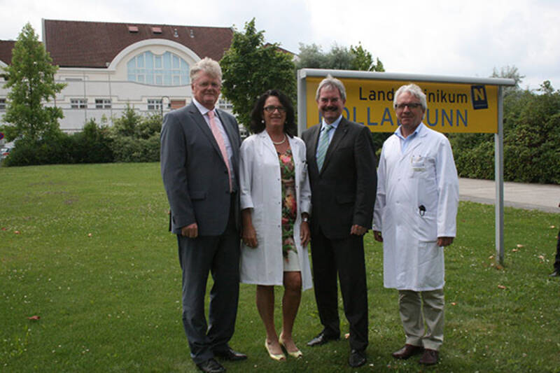(v.l.) Kaufm. Direktor Dipl. KH-BW PhDr. Josef Schneider, MBA, Pflegedirektorin DGKS Ingrid Czink, Landesrat Mag. Karl Wilfing, Ärztlicher Direktor Prim. Univ.-Doz. Dr. Rudolf Kuzmits