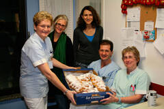DGKP Werner Glaser und PH Gudrun Sara freuen sich über die Lucia-Striezel von Betriebsrätin Elisabeth Hofmann, Dipl. MTF Andrea Seidl-Schuhmacher und DGKS Elfie Spitaler.