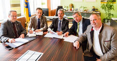 (v.l.) Dipl. KH-BW Helmut Krenn (Kaufm. Geschäftsführer NÖ Landeskliniken-Holding), DI Jürgen Tiefenbacher (Regionalmanager Weinviertel), Landesrat Mag. Karl Wilfing, Bürgermeister Helmut Laab, LAbg. Ing. Hermann Haller