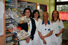 (v.l.) DGKS Lydia Eliass, BSc, Bereichsleitung, Mag. pharm. Barbara Januskovecz, Leitung Apotheke, DGKS Ute Zwazl und PKA Dagmar Heiling präsentieren das Modulsystem.