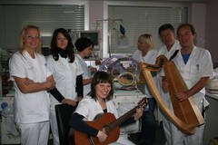Auf der Neonatologischen Überwachungsstation im LK Mistelbach-Gänserndorf wird nun auch Musiktherapie angeboten. Musiktherapeut Jörg Schuppler arbeitet dabei mit dem Kind, aber auch mit den Eltern bzw. der Mutter. Mit sanften Tönen werden Resonanzen zwischen Kind und Therapeut geschaffen, die die Kinder zur Ruhe kommen lassen und ihnen Geborgenheit vermitteln. „Die positive Wirkung zeigt sich sofort, die Kinder atmen besser und entspannen sich, was wiederum förderlich für die Gewichtszunahme ist. Gemeinsame Therapiestunden mit den Müttern sollen außerdem die Mutter-Kind-Beziehung in dieser schwierigen Zeit stärken“, erklärt der Musiktherapeut. Die Musiktherapie ist auf Initiative von Prim. Dr. Eva-Maria Uher im Institut für Physikalische Medizin und Rehabilitation etabliert worden und wird für Patienten der Onkologie, der Intensivstation und nun auch der Neonatologie angeboten.