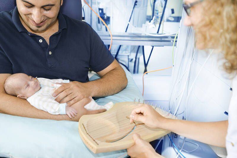 Ein weiteres Betätigungsfeld für die Musiktherapeuten im Universitätsklinikum St. Pölten ist die Neonatologie. Musiktherapie in diesem Feld bietet sowohl für Frühgeborene als auch für deren Eltern Therapie an.