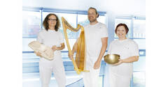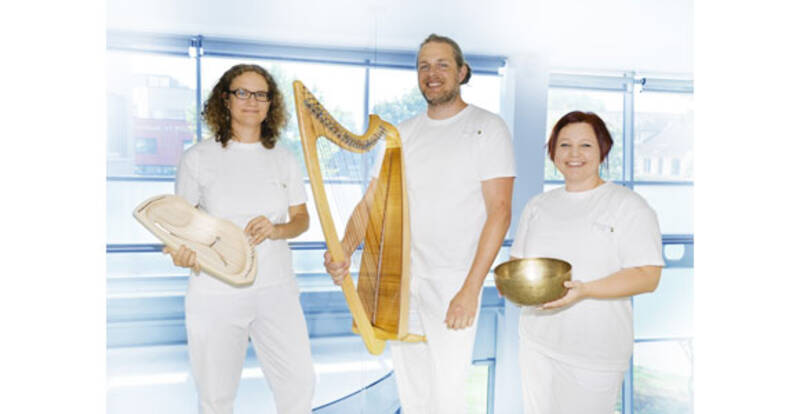 Die Musiktherapeuten am Universitätsklinikum St. Pölten: (v.l.) Barbara Koppensteiner, MSc, Neonatologie, Dr. Patrick Simon, Klinische Abteilung für Neurologie, Mag. Bianca Wirthner, MSc, Klinische Abteilung für Hals-, Nasen-, Ohrenkrankheiten