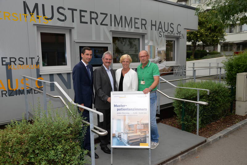 (v.l.) Mag. Dr. Bernhard Kadlec, Kaufmännischer Direktor am Universitätsklinikum St. Pölten, Landesrat Mag. Karl Wilfing, Regionalmanagerin Hon. Prof. (FH) Christa Stelzmüller, DI Wolfgang Lengauer