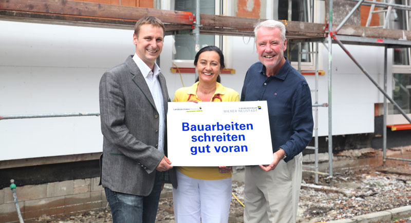 (v.l.) DI Markus Mandl, MSc, Projektmanager Bau der NÖ Landeskliniken-Holding, Prim. Dr. Doris Ehringer-Schetitska, Leiterin der Abteilung für Kinder- und Jugendheilkunde und Klubobmann Mag. Klaus Schneeberger freuen sich über den guten Baufortschritt.