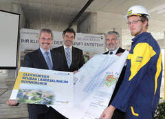 Mitte Oktober wurde Dachgleiche für den Neubau des Landesklinikums Neunkirchen gefeiert: (v.l.) Landesrat Mag. Karl Wilfing, Kaufmännischer Direktor Dipl.-KH BW Johann Ungersböck, Medizinscher Geschäftsführer der NÖ Landeskliniken-Holding Dr. Robert Griessner und Christopher Heitzer