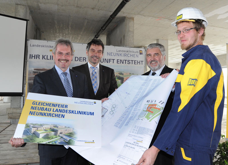 Anfang September 2013 wurde mit dem Neubau des Landesklinikums Neunkirchen begonnen. 40.000 Kubikmeter Beton und 3.000 Tonnen Stahl wurden verbaut. Die Bruttogeschoßfläche des neuen Klinikums beträgt rund 46.000m². Die Fertigstellung des Rohbaus ist termingerecht erfolgt und die Dachgleiche konnte unter Anwesenheit von Landesrat Mag. Karl Wilfing, LAbg. Hermann Hauer sowie zahlreichen Ehrengästen aus dem Land NÖ, der Stadtgemeinde sowie der NÖ Landeskliniken-Holding, den Planerinnen und Planern des Bauprojektes und vielen Mitarbeiterinnen und Mitarbeiter gebührend gefeiert werden. Die Fertigstellung und Inbetriebnahme des Neubaus rückt damit in greifbare Nähe.