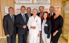 (v.l.) Karl Bader (LAbg. Bürgermeister), LR Mag. Karl Wilfing, OSR Wolfgang Labenbacher (Vizebürgermeister), Dr. Veronika Freystetter, DESA, MSc, MBA, Herbert Schrittwieser (Bürgermeister), Regina Kern, MBA, MSc (Pflegerische Klinikleitung), Dipl. KH-BW und akad. gepr. KH-Manager Günther Suppan (Kaufmännische Klinikleitung), Regionalmanagerin Hon. Prof. (FH) Christa Stelzmüller, MAS