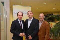 Regionalmanager Dr. Andreas Reifschneider und Kaufm. Direktor Mag. Franz Huber gratulieren dem neuen Kaufm. Standortleiter Dipl. KH-BW Robert Zeindl