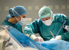 OA Dr. Wolfgang Weinstabl bei der Implantation eines künstlichen Hüftgelenksersatzes