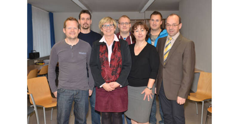 Lehrgang Operationsassistenz: (v.l.) 1. Reihe: Markus Ettenauer, Dir. Eva-Maria Körner (Direktorin Schule für allgemeine Gesundheits- und Krankenpflege Horn), Sabine Neunteufl (Betriebsrätin), Mag. Franz Huber (Kaufmännischer Direktor); 2. Reihe: Rainer Jelinek, Stefan Lachinger, Manuel Kargl