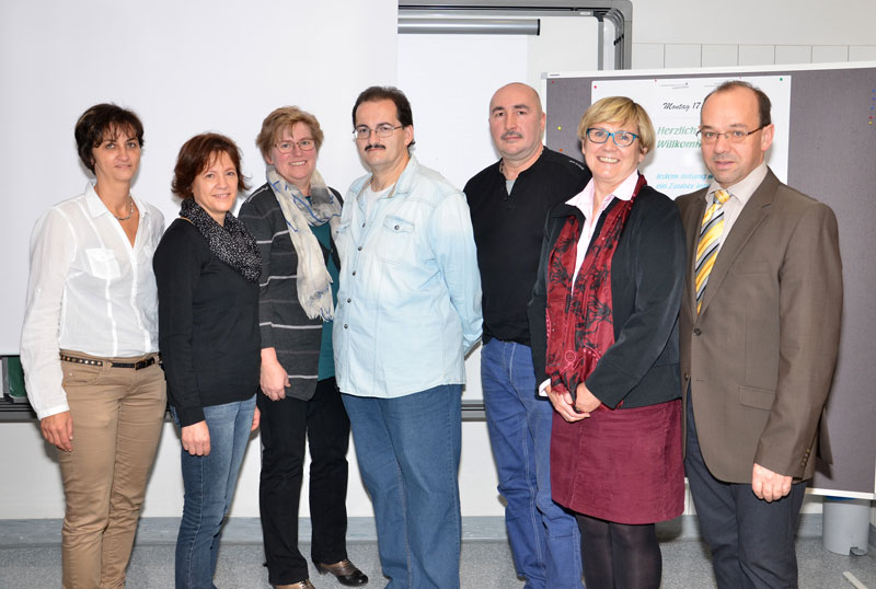 Lehrgang Pflegehilfe: (v.l.) DGKS Petra Pacher (Stv. Pflegedirektorin), Christa Hagen, Gabriele Zeitelberger, Herr Martin Gluderer, Vasile-Daniel Moga, Dir. Eva-Maria Körner, Mag. Franz Huber (Kaufmännischer Direktor)