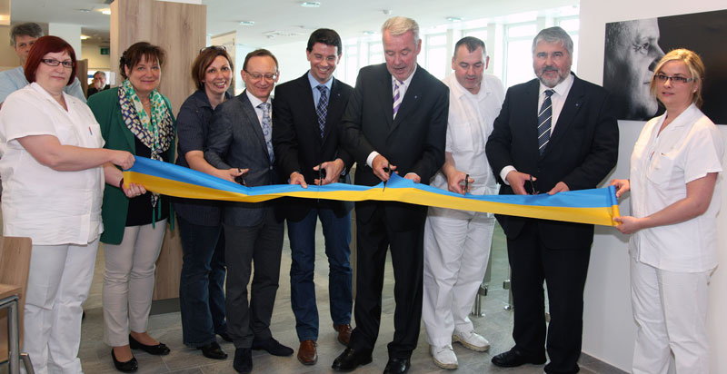 Bei der Eröffnung des Speisesaales: Andrea Strick, Pflegedirektorin Dr. Evelyn Fürtinger, MAS, die Vorsitzende des Angestelltenbetriebsrates Gerlinde Buchinger, Projektleiter Mag. (FH) Herbert Karner, der Kaufmännische Direktor Mag. Andreas Gamlich, Klubobmann Mag. Klaus Schneeberger, Küchenchef Johannes Haindl, der Medizinische Geschäftsführer der NÖ Landeskliniken-Holding Dr. Robert Griessner und Martina Stumpf