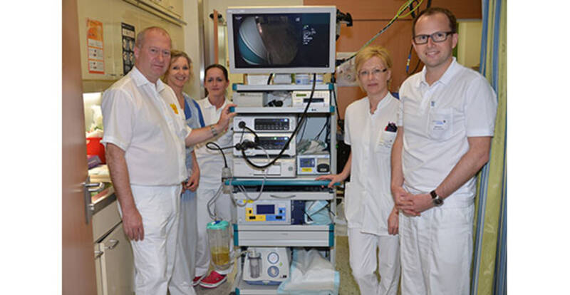 Seit Mitte April ist die Abteilung für Allgemein-, Viszeral- und Gefäßchirurgie mit einer neuartigen Endosonografieeinheit für den oberen Gastrointestinaltrakt ausgestattet. Das Team der Chirurgie kann damit ein breites Spektrum an endosonografischen Untersuchungen und Therapien anbieten.