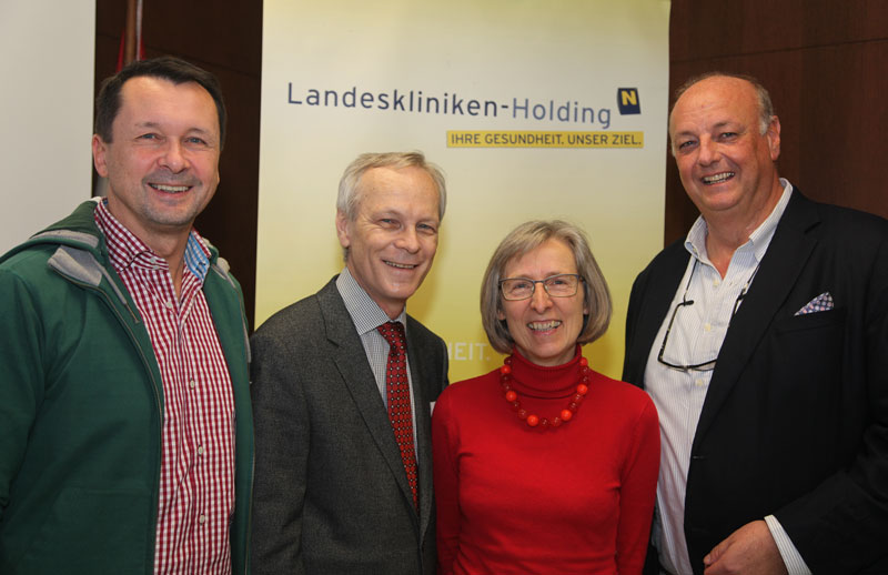 (v.l.) Dr. Peter Gorka, Fachgruppenobmann, Prim. Dr. Erwin Wodak, Abteilungsvorstand für Augenheilkunde und Optometrie, OÄ Dr. Hildegard Gruber aus dem Uniklinikum St. Pölten und OA Dr. Anton Hommer, der österreichische Vertreter in der europäischen Glaukomgesellschaft.